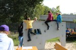 Zur Stärkung unserer kleinen Forscher und Entdecker gab es ein gemeinsames Mittagessen mit anschließenden Spiel und Spaß an der Kletterwand und auf der Wiese.